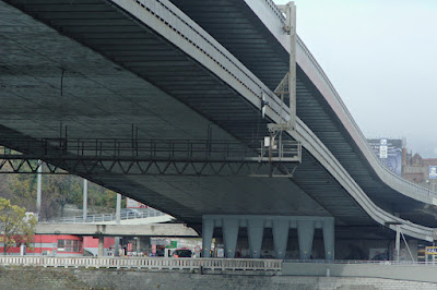 But a few days later, just by chance I found a link between them. Looking at a folder full of dull pictures, I suddenly got it: A dialogue during a journey to nowhere. Some pavement, a path in grass and a steel bridge, this might be a long way. To someone, the photographs might look like they were taken in different places. But they were not and the destination is unknown, so it can be called a journey to nowhere. But who is talking?